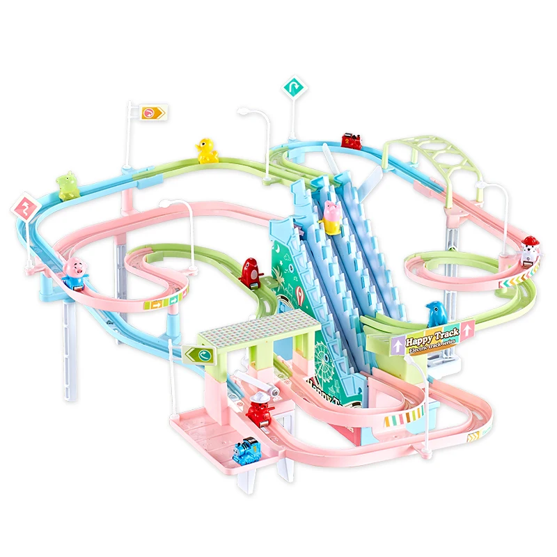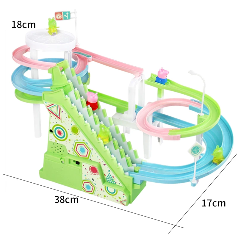 Special Offer DIY track pig figurki do zabawy tor wyścigowy wagon kolejowy elektryczna muzyka schodki do wchodzenia zabawki dla dzieci edukacyjne dla dzieci kolejowe Discount 51% Today!