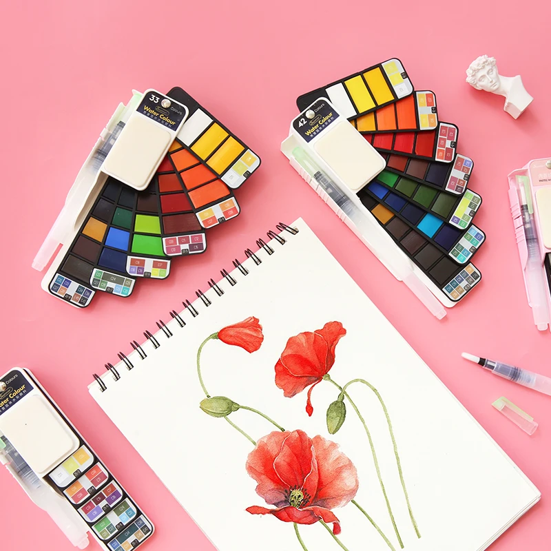 Special Offer Wysokiej jakości 18 25 33 42 kolor zestaw akwareli z pędzel wodny długopis składany podróży wody kolor artystyczny materiały malarskie Discount 30% Today!